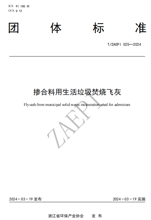 《摻合料用生活垃圾焚燒飛灰》標(biāo)準(zhǔn)號T/ZAEPI 025-2024,該標(biāo)準(zhǔn)由浙江京蘭環(huán)??萍加邢薰竞驼憬髮W(xué)主編,由浙江省環(huán)保產(chǎn)業(yè)協(xié)會于2024年3月19日批準(zhǔn)發(fā)布,2024年3月19日起實施。文件規(guī)定了摻合料用生活垃圾焚燒飛灰的術(shù)語和定義、技術(shù)要求、試驗方法、檢驗規(guī)則、包裝、標(biāo)志、運(yùn)輸和貯存。文件適用于低溫?zé)岱纸饧八唇舛竟に囂幚砗蠓?HJ 1134規(guī)定的摻合料用生活垃圾焚燒飛灰,為后續(xù)飛灰處理產(chǎn)物的產(chǎn)品化進(jìn)一步拓寬了應(yīng)用場景。
